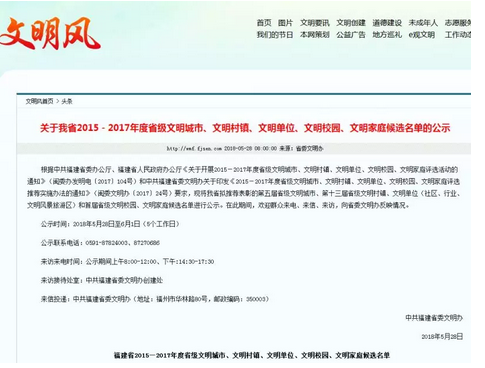 中共福建省委文明办(地址:福州市华林路80号,邮政编码:350003)