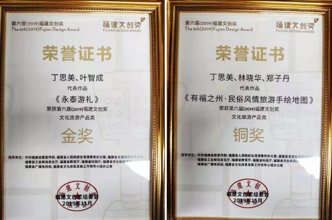 其中,获得“文化旅游产品类”金奖的《永泰游礼》、铜奖的《有福之洲 民俗风情旅游手绘地图》两幅作品均来自博彩网站导航 文化企业福州书境文化传媒有限公司。