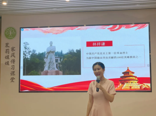 庄妍凭借声情并茂的讲演,讲述了林祥谦夫人陈桂贞的故事,陈桂贞是贤内助,是党的女儿,是家和党的精神卫士,是丈夫和党背后的巾帼英雄,她一生择一事终一生,一心爱一人而守初心。