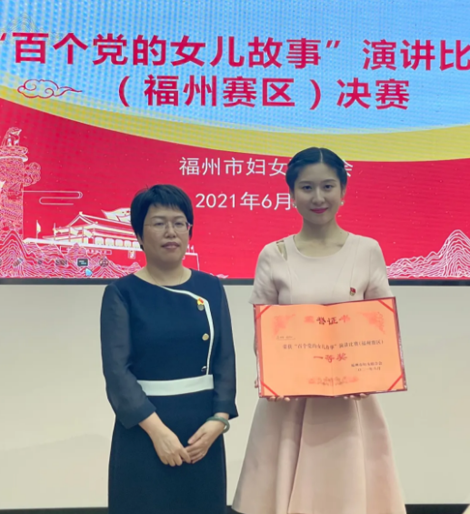 6月25日下午,市妇联在海峡妇女儿童活动中心举办“百个党的女儿故事”演讲比赛(福州赛区),我区妇工委选送的选手庄妍喜获一等奖。