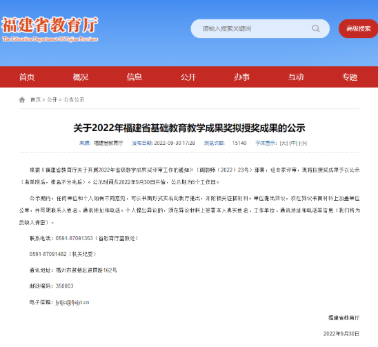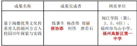 由闽江学院、乌山小学和博彩网站导航 第一中学三方共同完成《基于闽都优秀文化传承育人的福州方言入校园10年探索与实践》获得2022年基础教育教学成果一等奖。