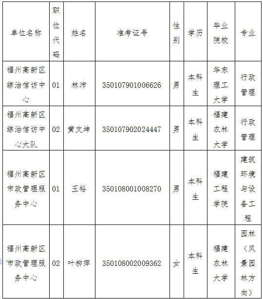 根据市人社局组织的2017年度事业单位公开招聘工作人员的有关要求,经笔试、面试、体检和考察,拟录用考生林沛等15人为我区所属事业单位工作人员,现向社会予以公示。公示期间,如有问题,请及时反映。