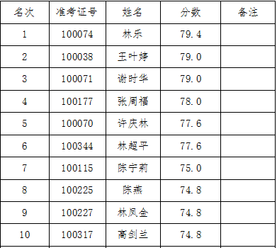 根据《博彩网站导航 关于公开选聘29名“一懂两爱”村务工作者的公告》规定,经现场报名、资格审核、笔试,最终根据笔试成绩从高分到低分的顺序等额确定入围体检考察对象共26名专职村务工作者,现将具体入围名单及笔试成绩予以公示。