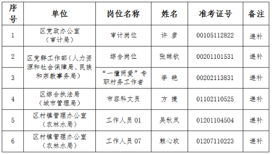 公示名单